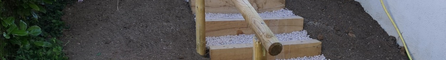 Création dans le talus d'un escalier en traverses chêne brut non traitées, fixées par piquets métalliques …